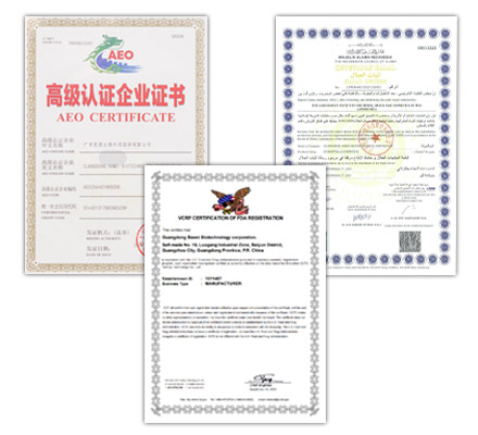 通過(guò)AEO高級(jí)企業(yè)認(rèn)證、美國(guó)FDA、HALAL認(rèn)證